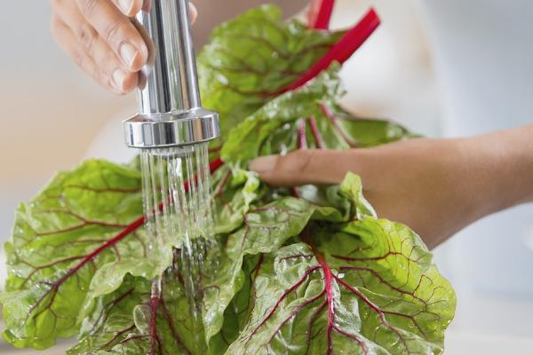 (2)菠菜、白菜等叶菜类可用食用碱溶液或淘米水浸泡5分钟左右,然后,用手轻轻搓洗,再用清水冲洗;条件允许的情况下也可以用温水清洗。